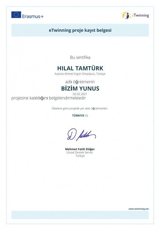 Türkçe öğretmenimiz Hilal Tamtürk ve oklumuz öğrencilerinden Yağız Altan, Elif Cemre Tekeli, Murat Enes Karamanlı'nın katılmış olduğu "Bizim Yunus" adlı eTwinning projesi şubat ayı itibariyle çalışmalarına başladı. Projede dokuz öğretmen ve yirmi yedi öğrenci yer alıyor. Bizim Yunus projesi halk şairimiz ve çok önemli bir değerimiz olan Yunus Emre'yi anlamayı ve anlatmayı hedefliyor. 2021 Türkçe ve Yunus Emre yılında gerçekleştirilecek olan bu anlamlı projede öğretmen ve öğrencilerimze kolaylıklar diliyoruz.